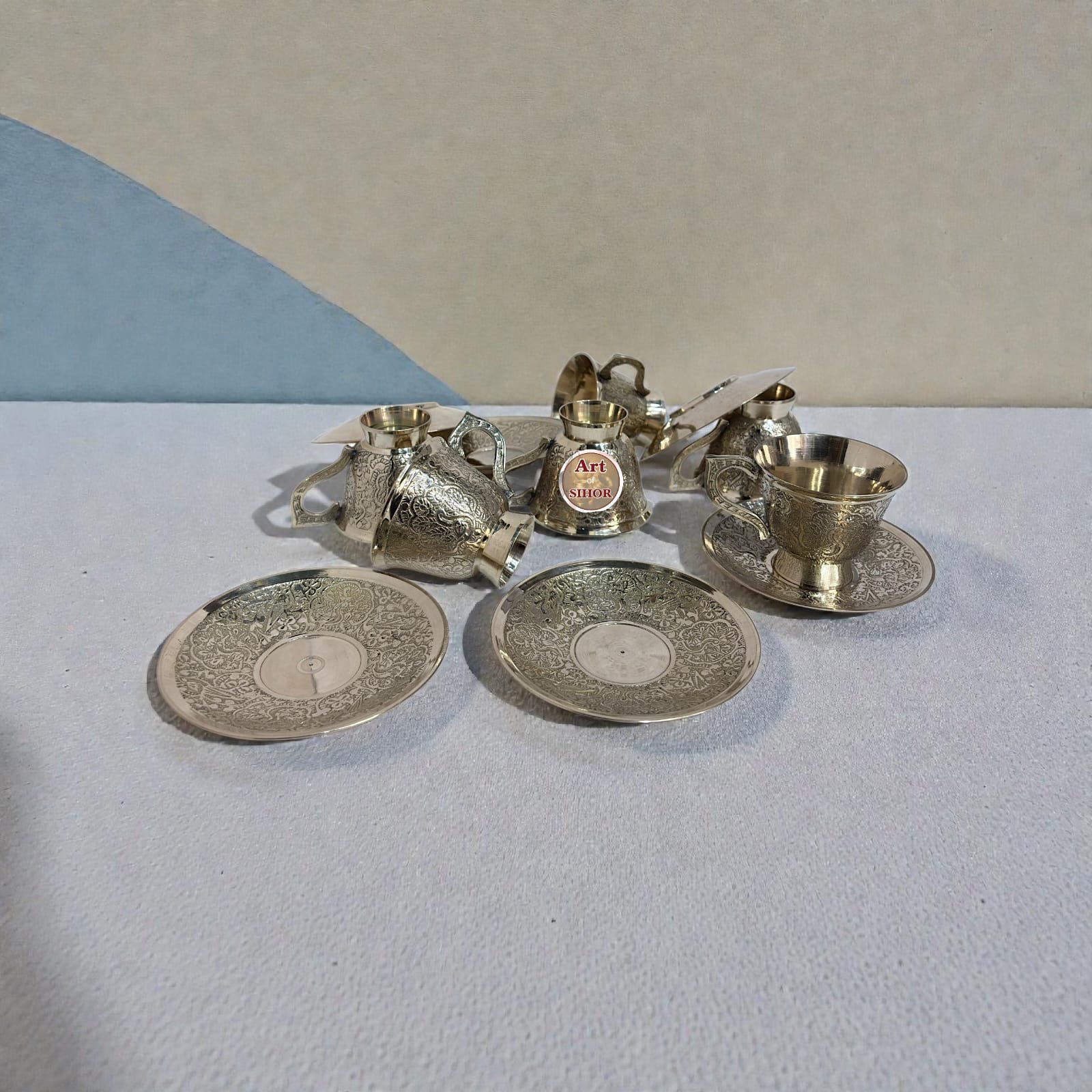 - β¨ ROYAL TRADITIONAL BRASS CUP & SAUCER SET β¨Turn every sip into a royal experience πIntroducing our Premium Solid Brass Cup & Saucer Set β a perfect blend of tradition, elegance, and durability. Crafted with beautiful engraved detailing and a rich golden finish, this stunning 12-piece set adds a luxurious touch to your tea or coffee serving. Whether youβre hosting guests, celebrating festivals, performing pooja rituals, or simply enjoying your daily chai, this set brings timeless heritage to your table.