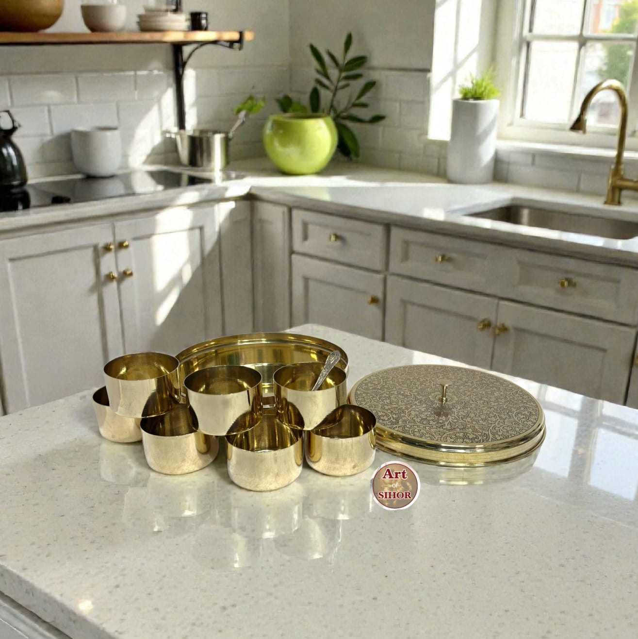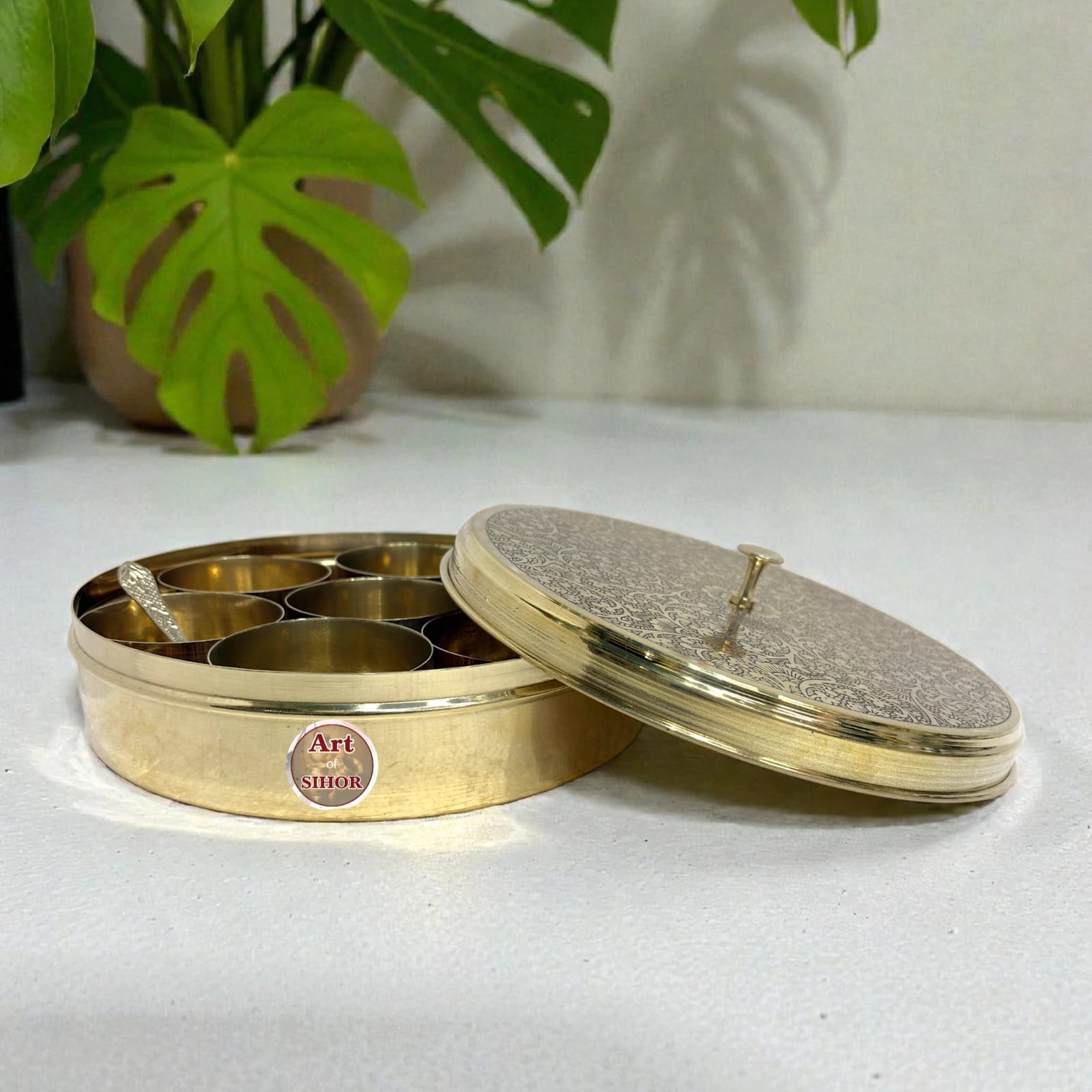 Be the first to review “BRASS MASALA DABBA ETCHING *8* inch”